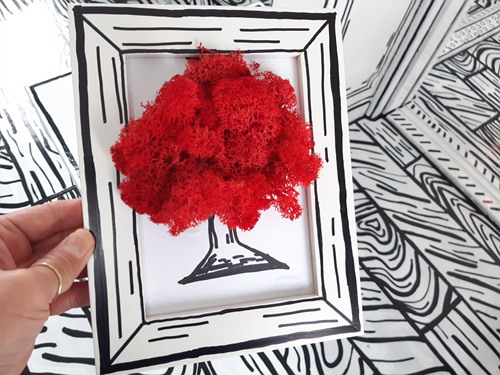 그림 위에 스칸디아모스를 목공풀을 이용해 붙여 주세요.