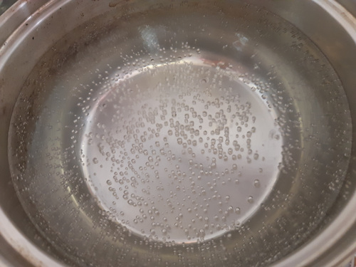 식초 한 숟가락을 넣고 물을 거뭇거뭇한 부분까지 채워 주세요.