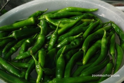 역시나 하나 하나 다 싱싱함 그자체입니다. 아참...여기서 몇가지 팁을 알려 드리자면 .... 깻잎을 사가지고 오셨으면 바로 물에 담궈 일정시간(30분)이 지나면 깨끗이 씻어 냉장고에 넣기전 물기를 완전히 제거한 후 공기가 들어가지 않게 밀봉한 다음 보관하셔야 가정이나 음시점에서도 오랫동안 두고 드실 수 있습니다. 그리고 고추는 깨끗이 씻은 후 꼭지를 떼고 보관하셔야 하구요...