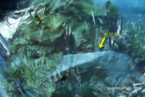 신문지는 습기를 잡아주는 역활을 하는데 상추에서도 예외는 아닌 듯...ㅎ...냉장보관 오래하면 자연적으로 물기가 생기거든요.. 조금 특이하다면 깻잎과 달리 비닐에 구멍이 나 있는 점과 상추 중간에 신문지를 깔아 둔 것이지요.