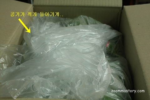 상추는 다른 채소에 비하면 조금 더 신경을 써서 포장된 상태더군요.... 박스안에 있던 상추는 비닐에 쌓여 있었습니다. 그런데 깻잎과 달리 상추도 고추처럼 비닐에 구멍이 나 있더군요...채소가 숨쉬는 구멍.......