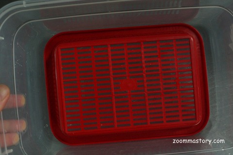 보관하는 방법은 깻잎과 마찬가지로 물기가 완전히 제거될 수 있도록 락앤락통에 소쿠리를 깔고 그 위에 고추를 차곡차곡 올려 주세요.