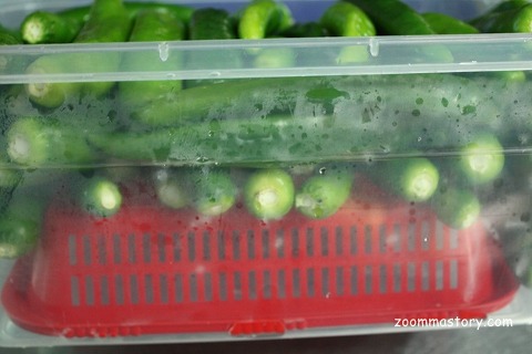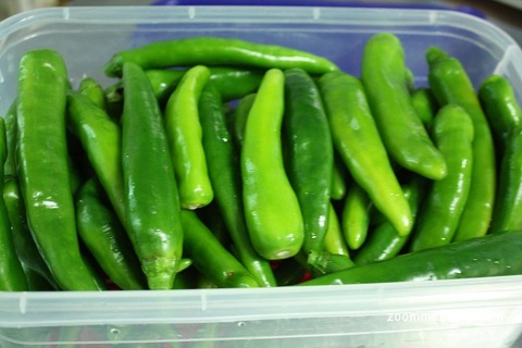 보관하는 방법은 깻잎과 마찬가지로 물기가 완전히 제거될 수 있도록 락앤락통에 소쿠리를 깔고 그 위에 고추를 차곡차곡 올려 주세요.