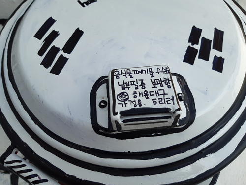 전체적으로 하얗게 칠한 음식물쓰레기통을 하루 정도 바짝 잘 말려 주었습니다. 그리고 처음 그 느낌 그대로 음식물쓰레기통에 있던 글귀도 꼼꼼히 그려 주었습니다.
