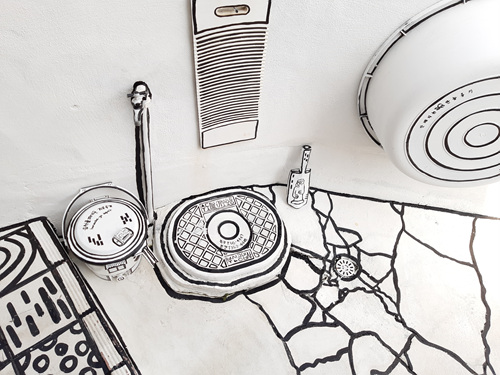가게 전체를 2d 인테리어로 그렸기에 직접 그린 음식물쓰레기통 소품도 어디에 놓아도 잘 어울립니다.