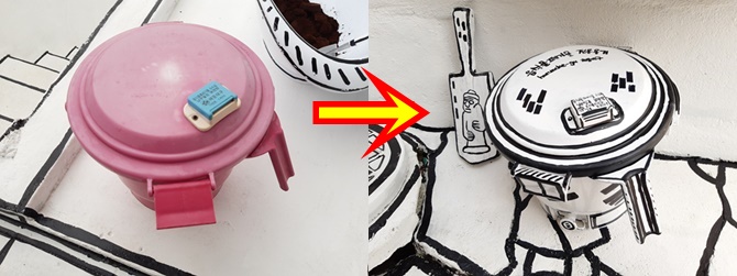 어떤가요.. 오래되어 빛바랜 음식물쓰레기통이 2d 인테리어 소품으로 변신하니 이쁘죠~