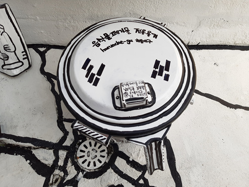 꼼꼼하게 그려 넣은 음식물쓰레기통 글귀... 사실 이 부분이 제일 어려웠어요.