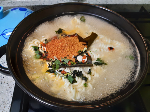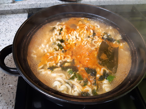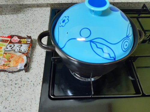 전 라면을 끓일때 뚝배기를 사용합니다. 물 끓일때 시간이 조금 걸리긴 해도 한 번 끓으면 잘 식지 않는 것이 특징인 점을 잘 활용하면 맛있는 라면을 끓일 수 있어요.