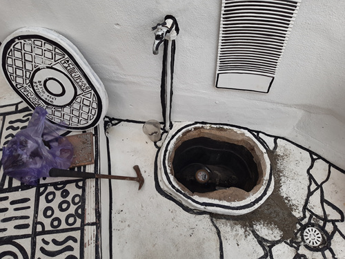 수도 계량기 주변 바닥이 금이 간 곳은 일일이 남편이 수리했어요.