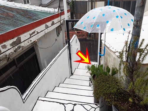 비가 오느 날 자세히 보니 역시 비를 거의 맞지 않았다. 약간의 생뚱맞은 발상이긴 하지만 나름 괜찮은 아이디어란 생각이 들었다. 물론 지금도 우산은 여전히 선인장 중앙에 잘 고정되어 있다.