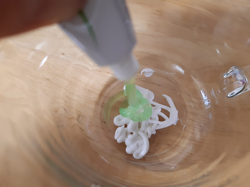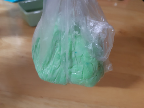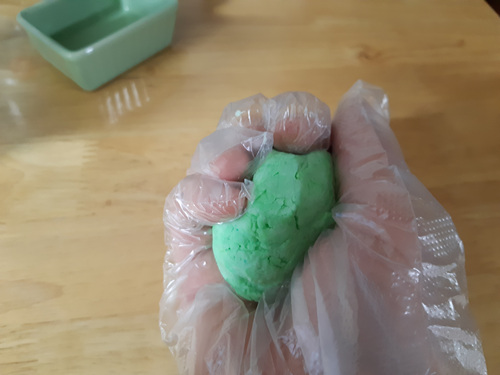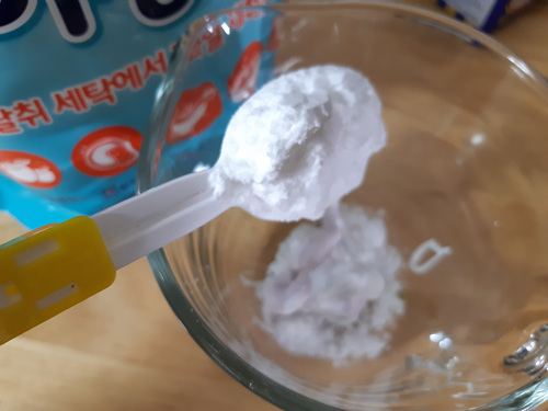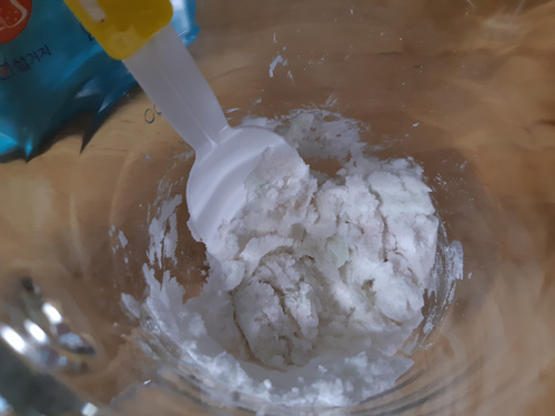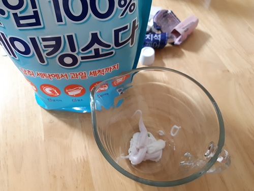 치약에 베이킹소다를 섞어 가면서 반죽을 해 주세요. 반죽은 너무 딱딱한 것 보다는 조금 묽게 하는게 좋아요. 고로 베이킹소다는 치약의 양에 따라 조금씩 섞어 주세요.