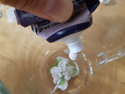 이 상태로도 괜찮지만 진짜 세정제로써의 효과가 있는지 육안으로 확인하고 싶다면 여기에 식용색소 한 방울 넣어 색이 확연히 차이가 나니 한 번 넣는 것도 괜춘요... 시중에 파는 세정제도 파란색 세정제잖아요.. ㅎㅎ