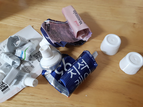전 자투리치약과 여행용 치약을 사용했어요.