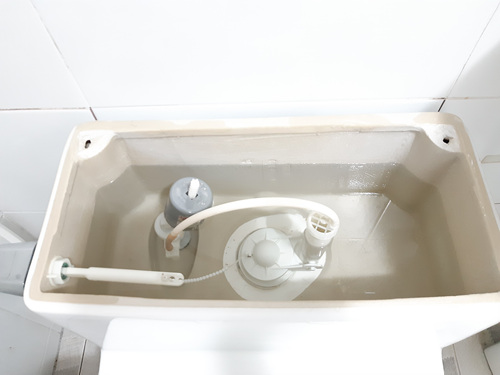 흡착고무 집게를 이용해 세정제를 연결 한 뒤 변기물통 속에 넣어 주세요.