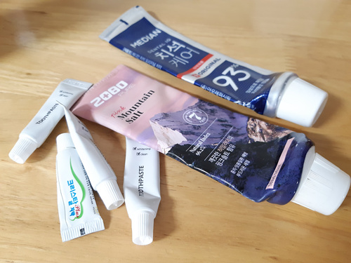 코로나19로 여행하는건 당분간 보류...아마도 이 어려운 시기가 다 지나가면 생각 다시 해 보는걸로....하여간 집에 있던 여행용 치약을 모조리 세정제 만드는데 투입했어요.