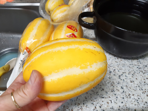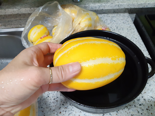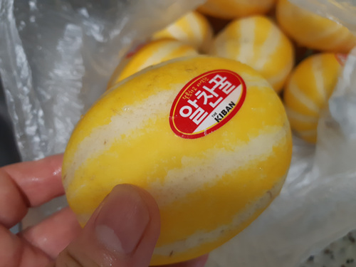 참외가 작아서 물에 둥둥 뜨겠지? 라는 생각을 하시는 분들을 위해 큰 참외 한 개도 넣어 보았습니다.