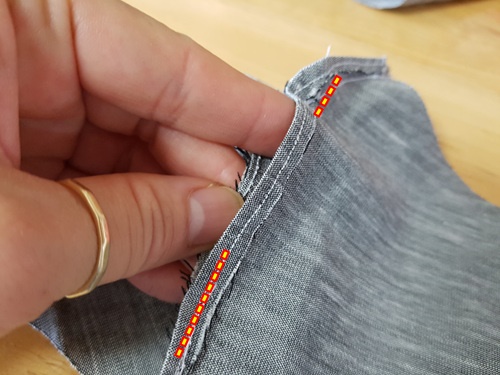 참고로... 안감은 양쪽을 박음질할때 중간 부분은 박음질 하지 말아야 해요.. 그 이유는 나중에 겉감과 함께 박음질한 후 뒤집을때 사용할거니까요..