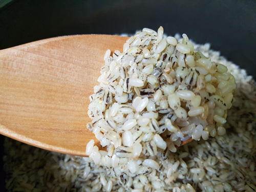 잡곡밥을 할때 비율은 알아서 하셔도 됩니다. 전 현미 반, 보리쌀 반 섞었습니다.