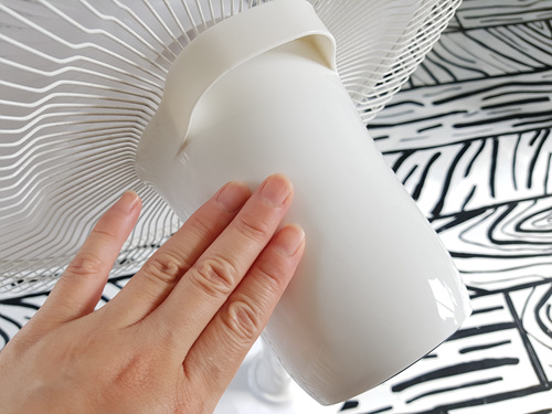 전 선풍기 뒷면 즉, 모터가 있는 부분에서 발생하는 열을 조금이나마 내리기 위해 빈 캔을 활용합니다.