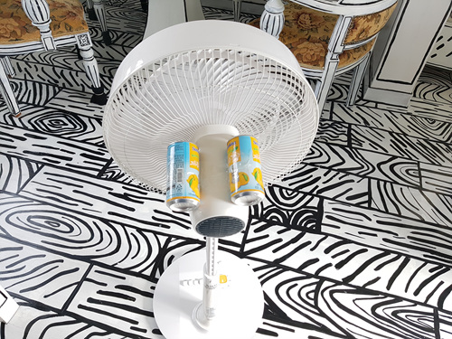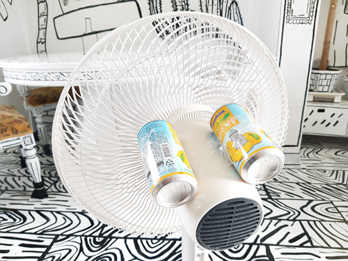 전 선풍기 뒷면 즉, 모터가 있는 부분에서 발생하는 열을 조금이나마 내리기 위해 빈 캔을 활용합니다.