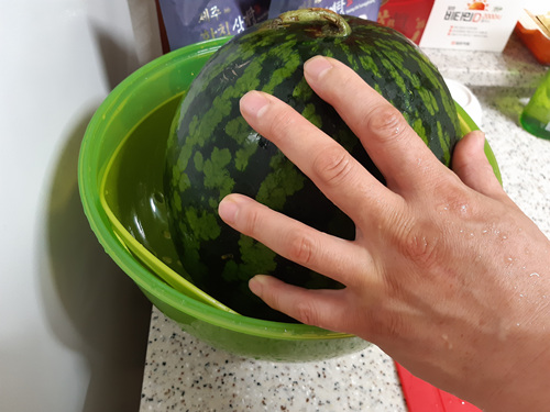 수박을 자르기 전에 먼저 깨끗히 씻어 줍니다.