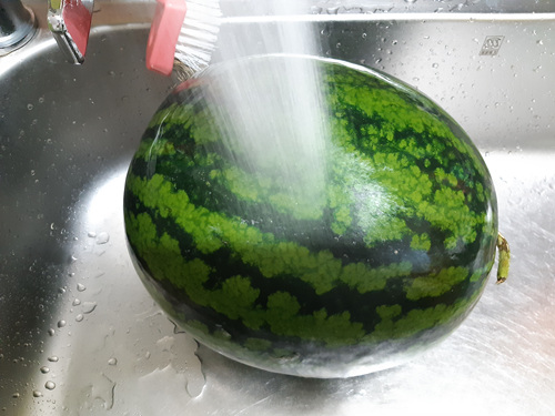 수박을 자르기 전에 먼저 깨끗히 씻어 줍니다.