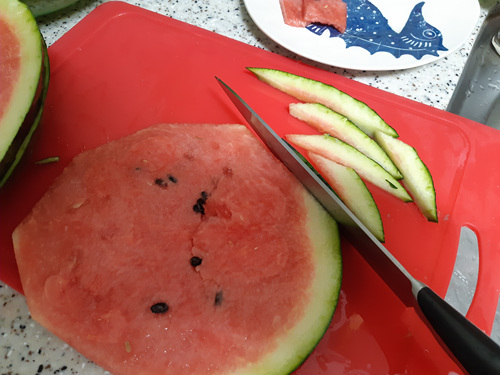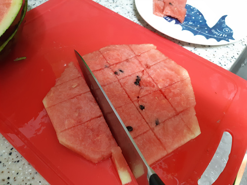 수박 썰어서 먹는 법은 수박껍질 부분을 자른 뒤 속만 먹기 좋게 썰어서 포크로 찍어 먹으면 편해요.