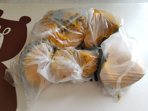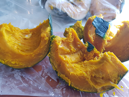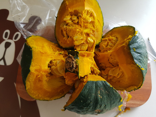 단호박은 사용할 것만 제외하고는 나머진 1회용 비닐백에 넣어 냉동실에 보관해 요리 직전 꺼내 조리하면 요리시간을 단축할 수 있다.