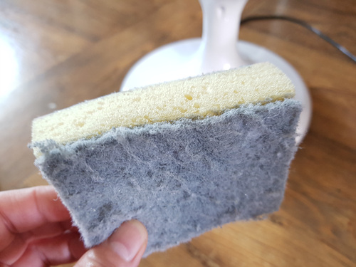 사실 저도 머리 좀 굴렸어요... ㅎㅎ... 못 쓰는 수세미를 활용하기로 했지요. 물론 서큘레이터를 분해하지 않고 먼지를 닦기로 말이죠.