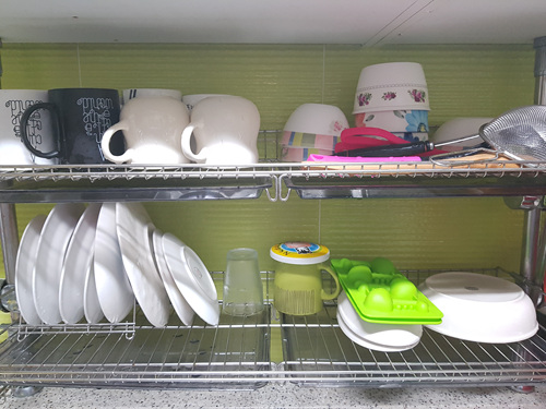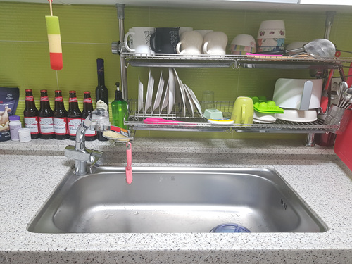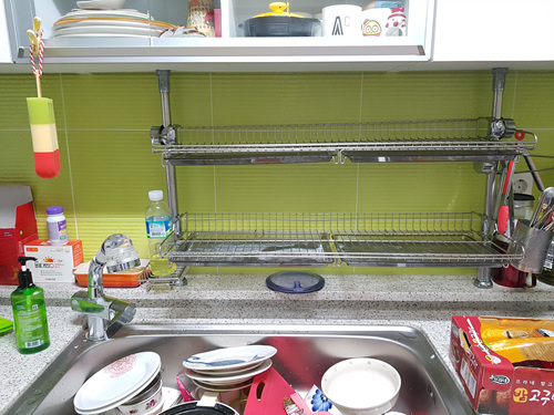 싱크대 건조대를 닦기 위해 그릇을 모조리 내렸습니다. 대부분 건조대 닦는다고 하면 설치된 건조대를 일일이 분리하는데요.. 이젠 간단하게 분리하지 않고 닦아 볼께요.