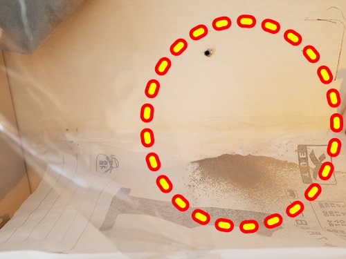 네...맞습니다. 벽을 뚫을때 나오는 흙과 먼지가 종이 위에 쌓여 있습니다.