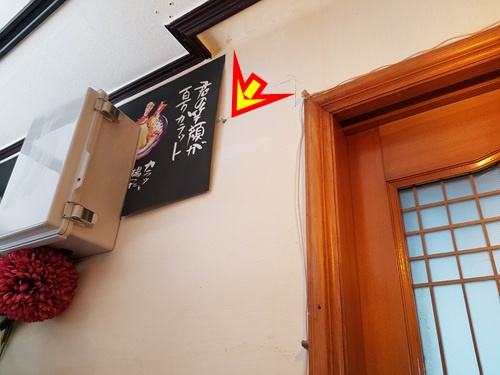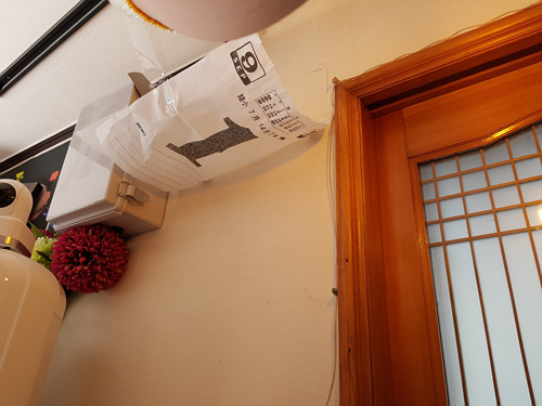 벽에 구멍을 뚫기 전 남편이 붙여 놓은 종이