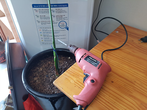 구멍을 뚫을때 종이를 받쳐 놓지 않았다면 아마도 온 사방에 흙먼지가 폴폴 날려 대청소를 해야할 상황이 될겁니다.