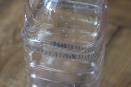 먼저 페트병의 홈이 있는 중앙 부분에 칼로 잘라 주세요.