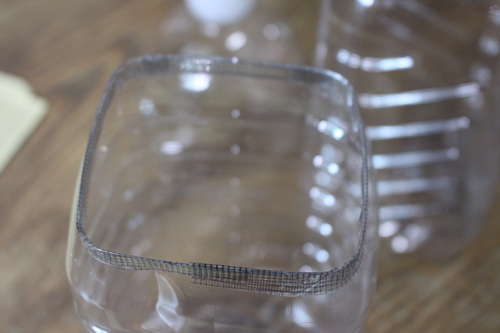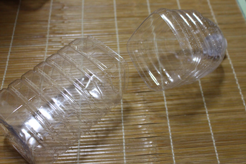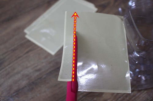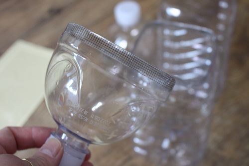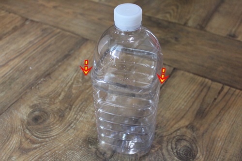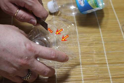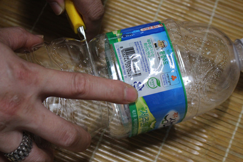 먼저 페트병의 홈이 있는 중앙 부분에 칼로 잘라 주세요.