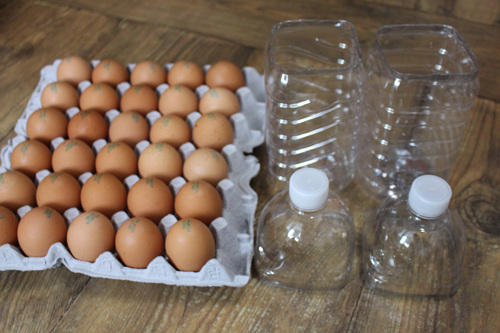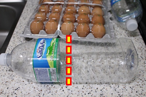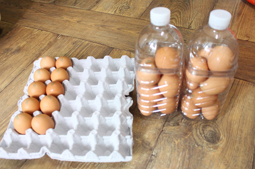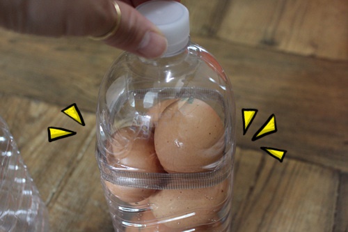 페트병 아래부분과 윗부분을 꼼꼼히 테이프를 붙여 주면 달걀보관함 완성~