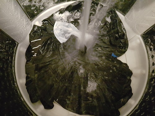 짜잔... 한 번 해 보면 누구나 놀라게 되는 광경...... 검정색 옷 세탁 후 묻어 나온 먼지들이 하나도 없어요.