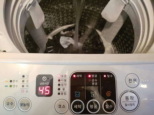 그리고 평소처럼 세제를 넣어 세탁을 해 줍니다.