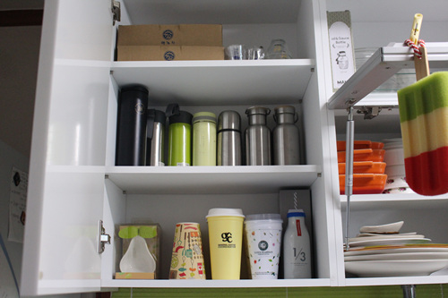 그리고 선반 한칸 씩 나름 이름을 정해 정리하면 좋은데요. 텀블러만 놓는 자리라던가... 접시만 놓은 자리, 컵만 놓는 자리등 이름을 정하면 좋아요. 그래야 찾기 쉽고 꺼내기 쉽거든요.