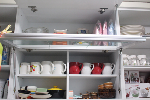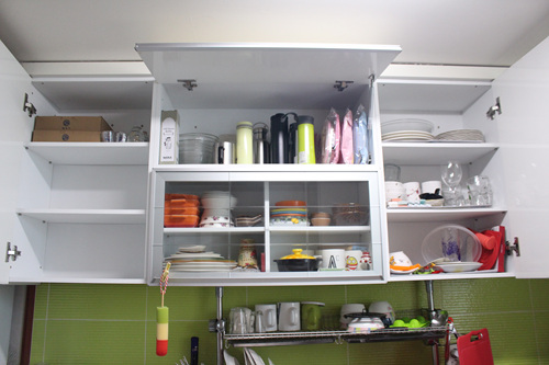 싱크대 선반을 누가 봐도 쉽게 찾고 사용할 수 있도록 해 놓아어요. 맨 윗같은 잘 안쓰는 그릇이나 물건들을 올려 두면 좋아요
