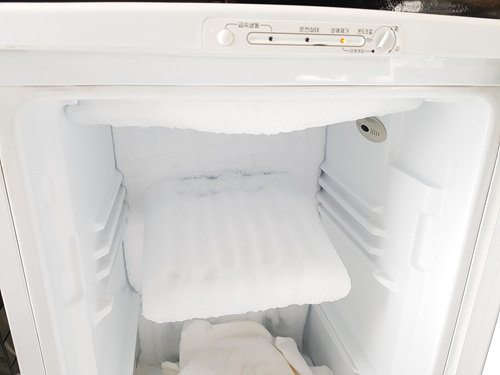냉동실 전용 냉장고는 성에가 더 심했습니다.