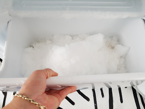 눈처럼 부드러운 성에는 주걱으로 다 긁어 주세요. 부드러우니 쉽게 제거되니 냉장고 긁힐 걱정은 하지 않아도 됩니다.