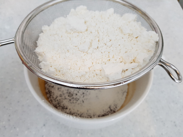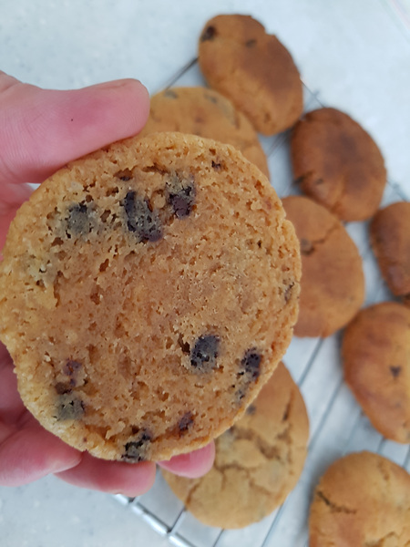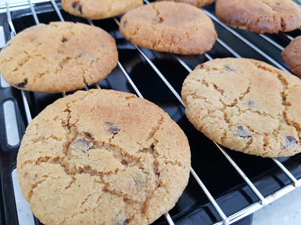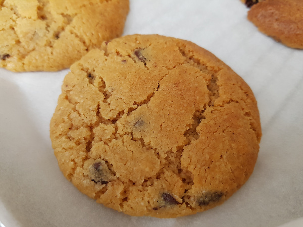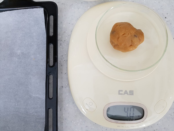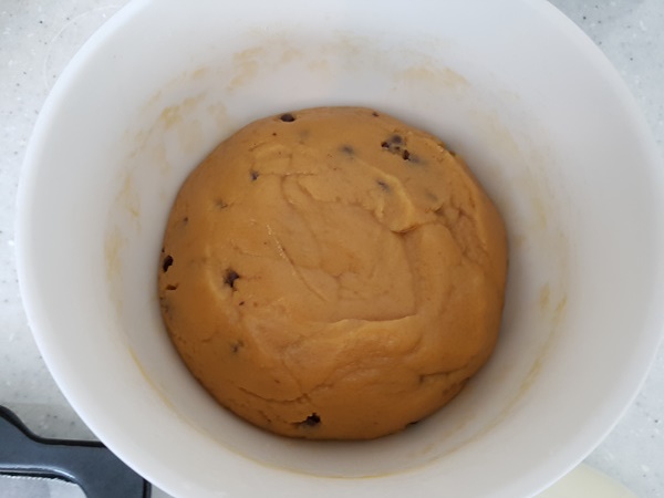 버터 115g, 흑설탕+황설탕 200g , 중력분 170g , 계란노른자 1개 , 다크초코릿 (커버춰) 200g , 베이킹소다 2g