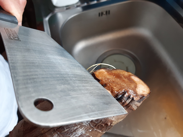 남편은 도저히 안되겠다고 극단의 조치로 녹아 내리는 부분을 칼로 자르기로 했습니다.