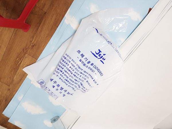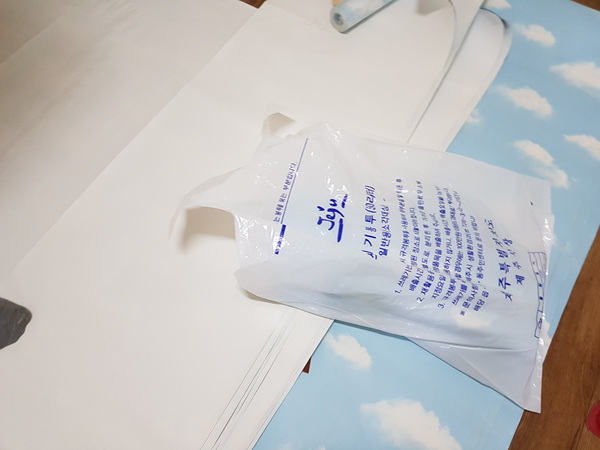 큰 쓰레기봉지에 풀칠한 도배지를 몇 개 넣고 잠시 쉬면서 다음 작업을 이어 나갔다.