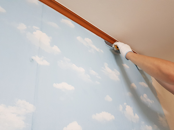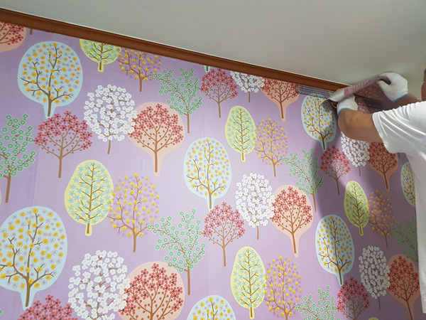벽에 튀어 나온 벽지는 자를 이용해 고정한 뒤 커터칼로 깔끔하게 잘라 마무리했다.