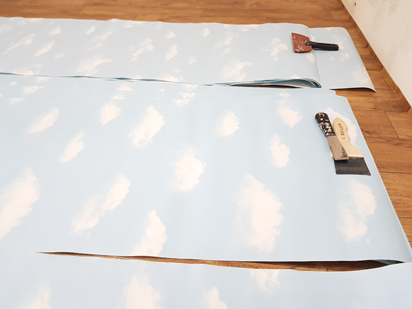 모양 맞추고 자르는 것도 일이었다. 물론 이게 제일 쉬운 부분이었다는건 도배를 다하고 깨달았지만 ᆢ