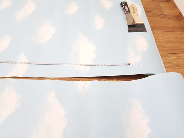 먼저 벽에 붙일 사이즈를 줄자로 체크하고 그림까지 맞추며 열심히 크기대로 잘랐다.