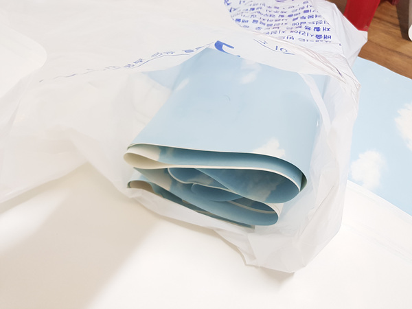 사실 도배를 처음 해보면서 안거는 풀칠을 한 후 바로 벽에 붙이지 않는다는 것이다. 풀이 도배지에 스며들수 있도록 돌돌 말아 비닐에 넣은 후 약 5~10분 정도 둔 뒤 벽에 바르면 잘 붙는다는 것이다.