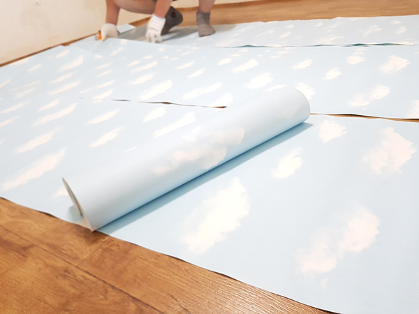 먼저 벽에 붙일 사이즈를 줄자로 체크하고 그림까지 맞추며 열심히 크기대로 잘랐다.